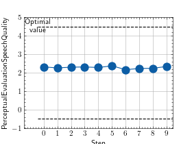 >>> # Example plotting a single value >>> import torch >>> from torchmetrics.audio import PerceptualEvaluationSpeechQuality >>> metric = PerceptualEvaluationSpeechQuality(8000, 'nb') >>> metric.update(torch.rand(8000), torch.rand(8000)) >>> fig_, ax_ = metric.plot()