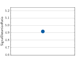 >>> # Example plotting a single value >>> import torch >>> from torchmetrics.audio import SignalDistortionRatio >>> metric = SignalDistortionRatio() >>> metric.update(torch.rand(8000), torch.rand(8000)) >>> fig_, ax_ = metric.plot()