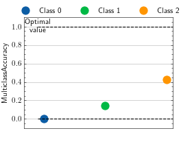>>> from torch import randint >>> # Example plotting a single value per class >>> from torchmetrics.classification import MulticlassAccuracy >>> metric = MulticlassAccuracy(num_classes=3, average=None) >>> metric.update(randint(3, (20,)), randint(3, (20,))) >>> fig_, ax_ = metric.plot()