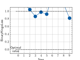 taskargument to either'binary'or'multiclass'. See the documentation ofBinaryHingeLossandMulticlassHingeLossfor the specific details of each argument influence and examples.- Legacy Example: