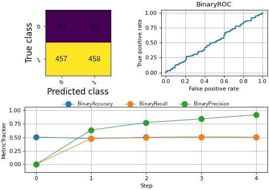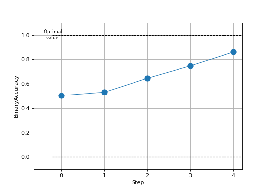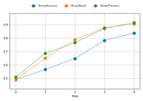 Do note that metrics that do not return simple scalar tensors, such as ConfusionMatrix, ROC that have specialized visualization does not support plotting multiple steps, out of the box and the user needs to manually plot the values for each step.