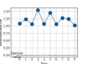 >>> from torch import randn >>> # Example plotting multiple values >>> from torchmetrics.regression import MeanAbsoluteError >>> metric = MeanAbsoluteError() >>> values = [] >>> for _ in range(10): ... values.append(metric(randn(10,), randn(10,))) >>> fig, ax = metric.plot(values)