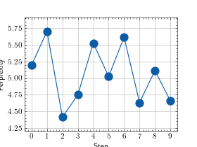 >>> # Example plotting multiple values >>> import torch >>> from torchmetrics.text import Perplexity >>> metric = Perplexity() >>> values = [ ] >>> for _ in range(10): ... values.append(metric(torch.rand(2, 8, 5), torch.randint(5, (2, 8)))) >>> fig_, ax_ = metric.plot(values)
