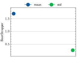 >>> # Example plotting a single value >>> import torch >>> from torchmetrics.wrappers import BootStrapper >>> from torchmetrics.regression import MeanSquaredError >>> metric = BootStrapper(MeanSquaredError(), num_bootstraps=20) >>> metric.update(torch.randn(100,), torch.randn(100,)) >>> fig_, ax_ = metric.plot()