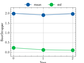 >>> # Example plotting multiple values >>> import torch >>> from torchmetrics.wrappers import BootStrapper >>> from torchmetrics.regression import MeanSquaredError >>> metric = BootStrapper(MeanSquaredError(), num_bootstraps=20) >>> values = [ ] >>> for _ in range(3): ... values.append(metric(torch.randn(100,), torch.randn(100,))) >>> fig_, ax_ = metric.plot(values)